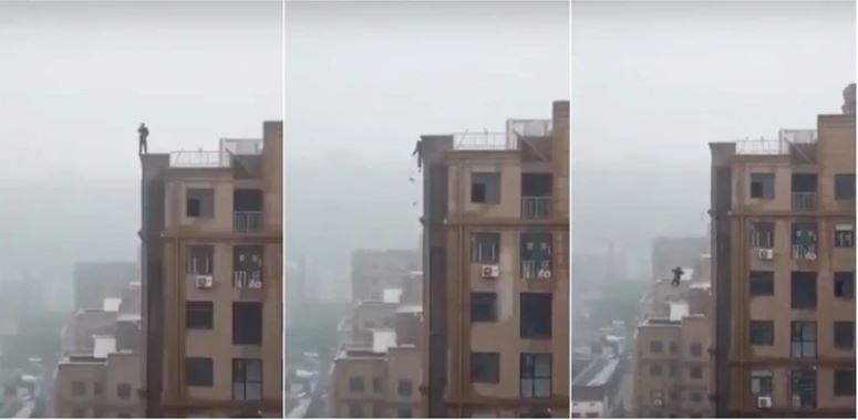En las alturas de la azotea de un edificio, el susodicho tomó su celular para extenderlo y apuntarlo hacia él mismo. Una selfie.