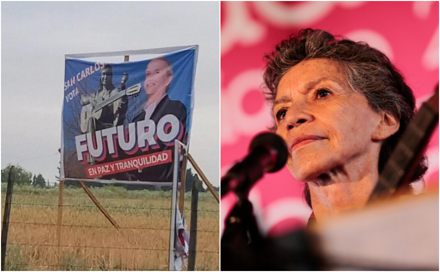 La hija de la cantautora, junto a la Fundación Violeta Parra, manifestaron su molestia por un lienzo instalado en la comuna de San Carlos, donde aparece el candidato del Frente Social Cristiano junto a la figura de la fallecida artista.