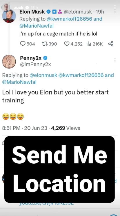 estado hablando, a través de mensajes de texto con Mark y Elon, y que ambos desean enfrentarse en Las Vegas.