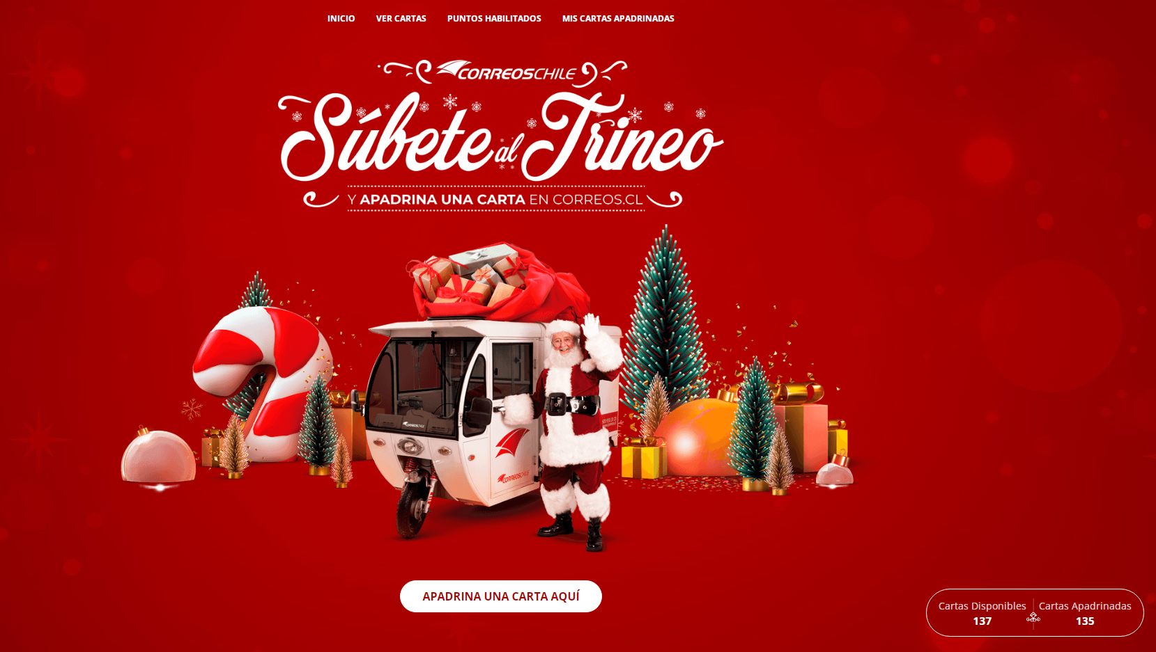 Exactamente a un mes para que llegue la Navidad, el Ministerio de Desarrollo Social y Familia, en una iniciativa junto a Correos de Chile, lanzaron la campaña "Subirse al trineo y apadrinar una carta de un niño o niña".