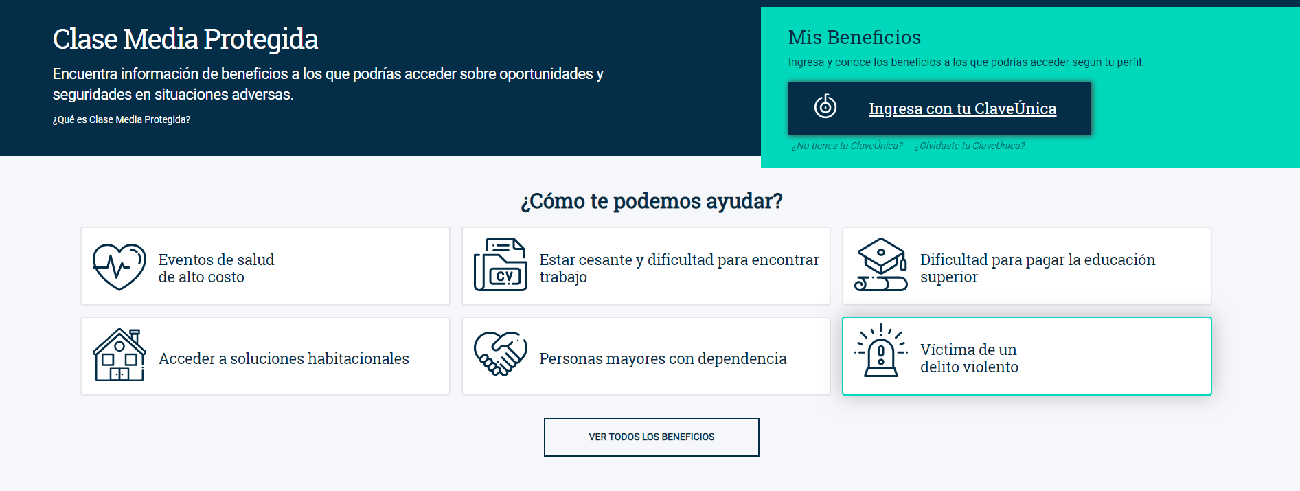 La plataforma digital fue dispuesta por el gobierno y ofrece una serie de respuestas para situaciones problemáticas como eventos de salud de alto costo, acceso a soluciones habitacionales, estar cesante y con dificultades para encontrar trabajo, personas mayores de edad con dependencia, dificultad para pagar la educación superior y ser víctima de un delito violento.