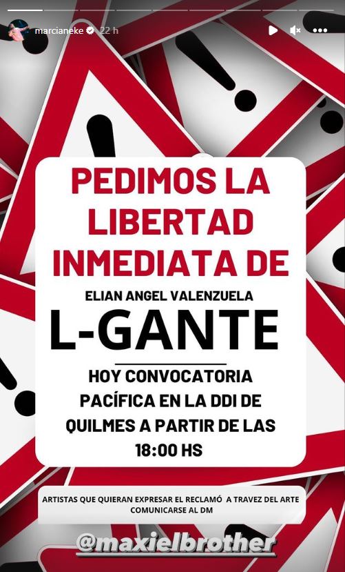 El intérprete argentino fue arrestado por los delitos de privación ilegítima de la libertad, amenazas agravadas y tenencia ilegítima de armas de fuego. Un hecho al que se refirió el artista urbano nacional, compartiendo además una convocatoria de manifestaciones por el hecho.