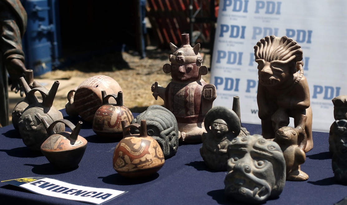 Un total de 49 piezas patrimoniales fueron incautadas, entre las que hay objetos de origen mapuche como palines y un tótem, además de ocho estatuas que son parte del Cementerio General.