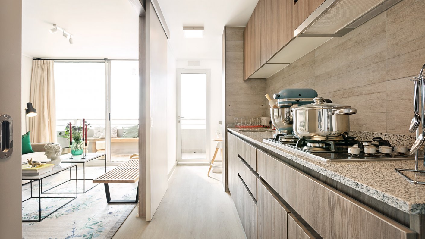 Un ejemplo es lo que está haciendo Socovesa Santiago que ha incorporado cocinas diseñadas bajo la lógica de la “hibridación”, presente en su proyecto Vista Los Bravos en La Dehesa, y que para acoger distintas funciones, se fusionó con el living y el comedor permitiendo un uso más libre del espacio.