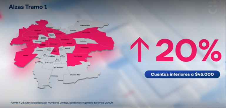 Las comunas que menos alzas experimentarán o que incluso tienen una disminución, explicó Verdejo, "son las que tienen un descuento en el precio de la energía que actualmente todavía tienen centrales a carbón".
