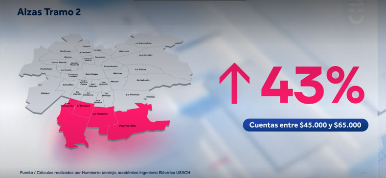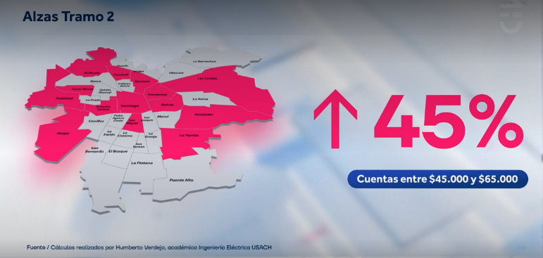 Corresponde a las cuentas de luz que tienen un costo de entre $45 y $65 mil. Y el alza se dividirá de la siguiente manera: