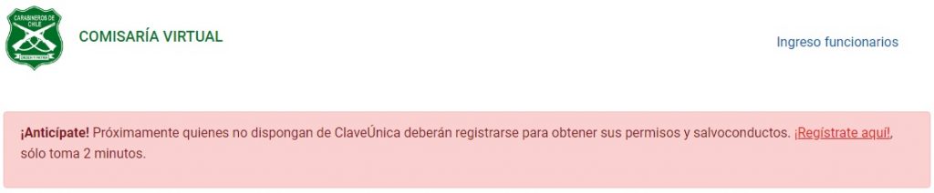 Desde ese día, solo se podrá acceder a éstos con la Clave Única o iniciando una sesión en la plataforma web de Carabineros.