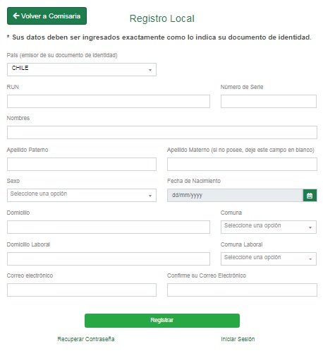 Para registrarse, primero se debe ingresar al sitio web www.comisariavirtual.cl, donde se desplegará una barra en rojo con las palabras “¡Regístrate aquí!”, a la cual se le debe dar clic.