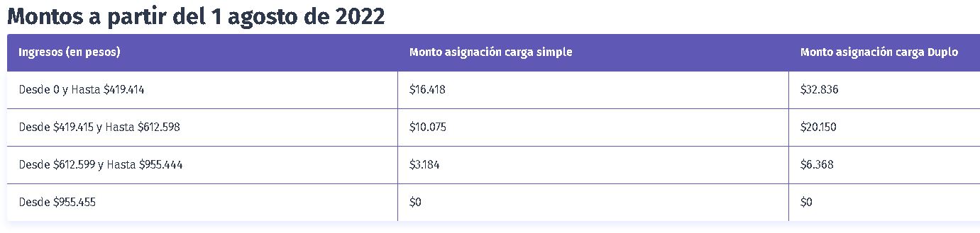 Se trata de un aporte que se otorga por cada carga familiar acreditada y que varía de acuerdo con el sueldo del beneficiario o de la beneficiaria.