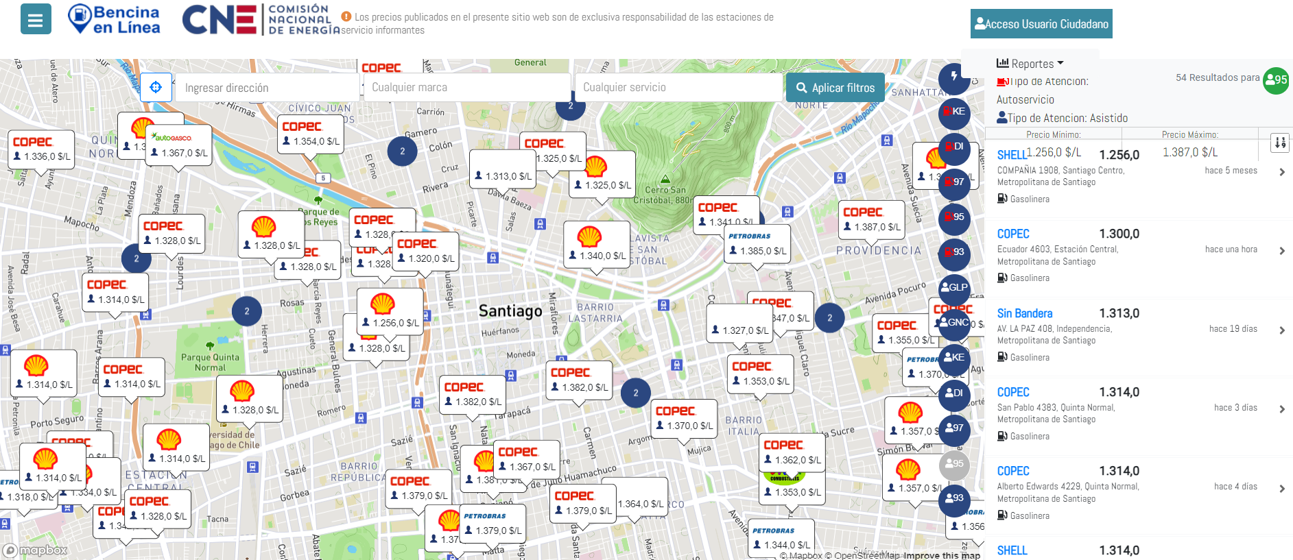 En la página web de Bencina en Línea las personas pueden ingresar y comparar los precios en el lugares de su preferencia: