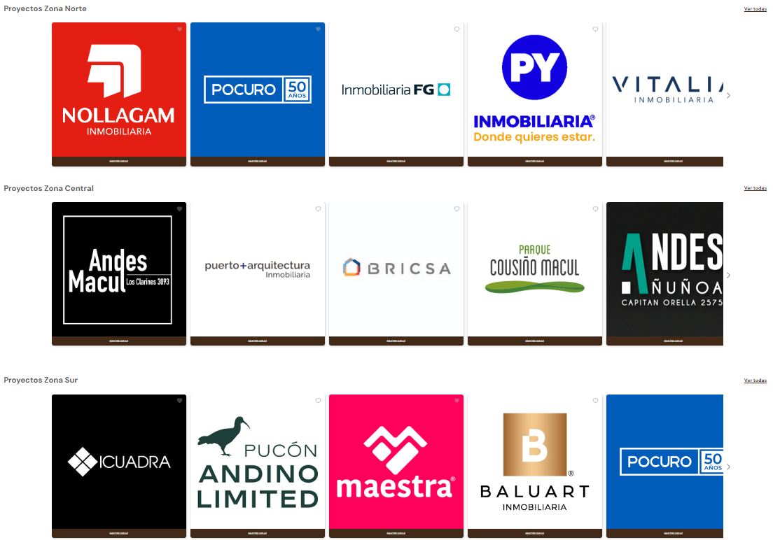 Así, los interesados pueden filtrar por la comuna donde se ubican los proyectos, además del tipo de propiedad, como casa, departamentos, terrenos, etc.: