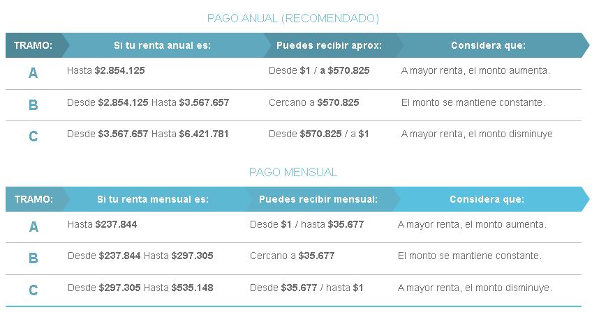 El monto del aporte depende del tramo en que se encuentre la trabajadora y la modalidad en que reciba el pago. ¿Si postulo ahora, cuándo recibo el monto? Revisa los detalles acá.