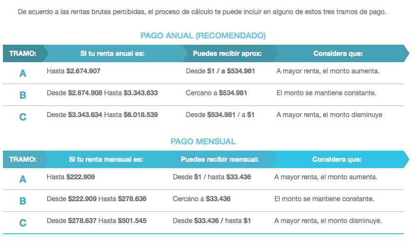El dinero al que podrás acceder se calcula en base a la renta bruta percibida y, según se detalla en el sitio web, es a través de tres tramos: