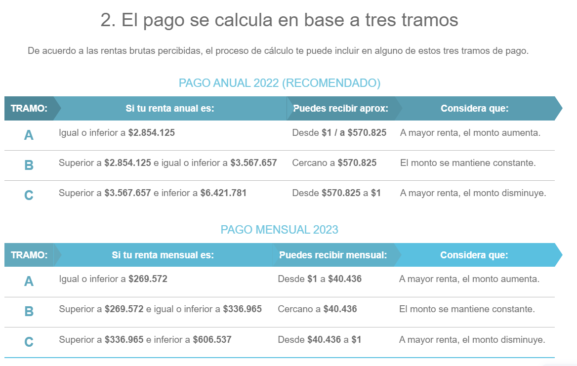Pago anual: percibir una renta bruta anual inferior a $7.278.446
