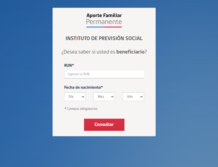 Para consultar si te corresponde el Aporte Familiar Permanente o Bono Marzo, puedes ingresar tus datos personales (RUN y fecha de nacimiento) en el siguiente enlace.