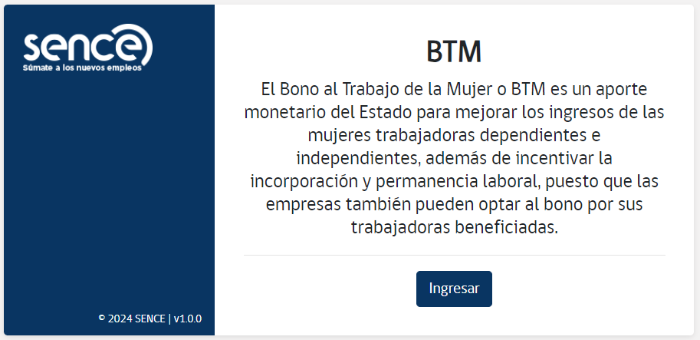 Para conocer si eres beneficiaria del Bono Mujer Trabajadora del mes de septiembre, puedes ingresar Clave Única o Clave SENCE a sistemas.sence.cl.
