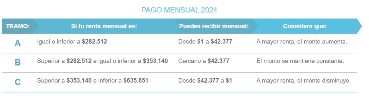 Por lo mismo, el cálculo del monto final te puede incluir en alguno de los siguientes tramos de pago, según datos del Gobierno: