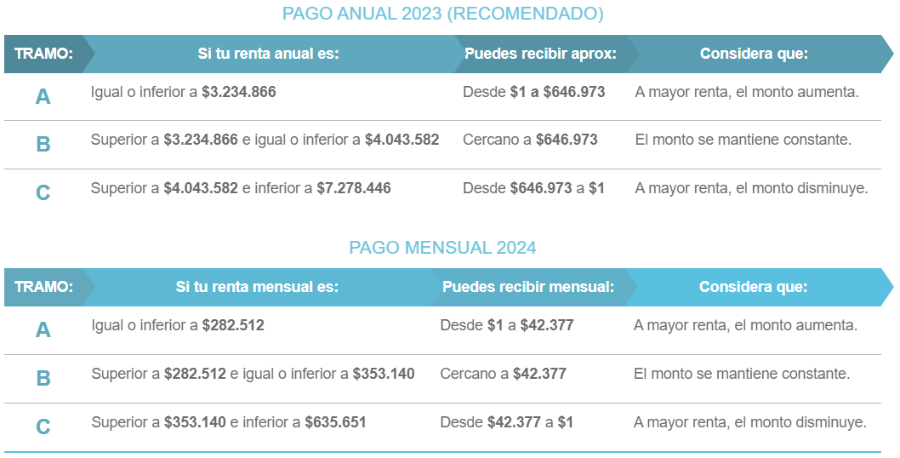 Por lo mismo, el cálculo del monto final te puede incluir en alguno de los siguientes tramos de pago, según datos del Gobierno: