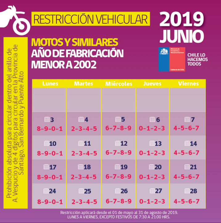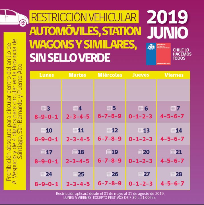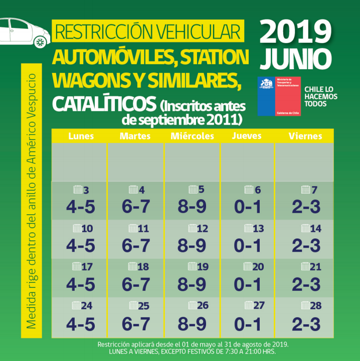 Desde el 1 de mayo que rige en Santiago el calendario de restricción permanente para vehículos catalíticos con fecha de inscripción a septiembre de 2011.