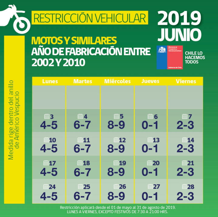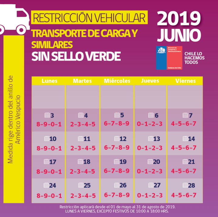 Entre lunes y viernes, excepto festivos, la restricción se implementa desde las 7:30 y las 21:00 horas en el anillo de Américo Vespucio, y regirá hasta el 31 de agosto.