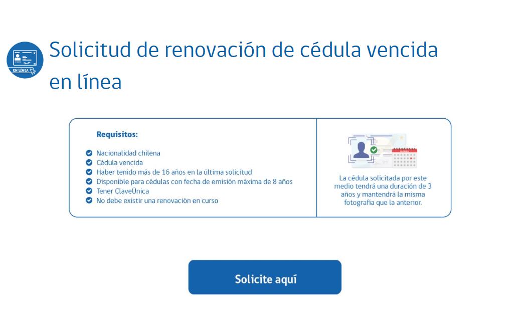 Si tu cédula de identidad se encuentra vencida, puedes solicitar su renovación de forma online de esta forma: