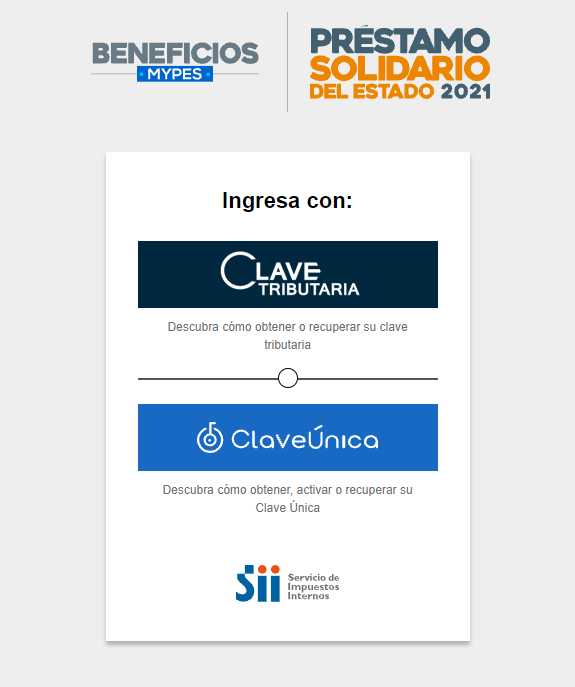 Finalmente, el último paso es el ingreso con los datos personales para completar el formulario de solicitud, ya sea mediante la Clave Tributaria o la Clave Única.