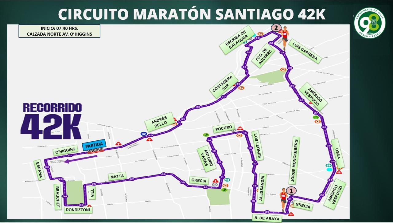 Estos serán los cortes de tránsito por la Maratón de Santiago en la categoría 42K