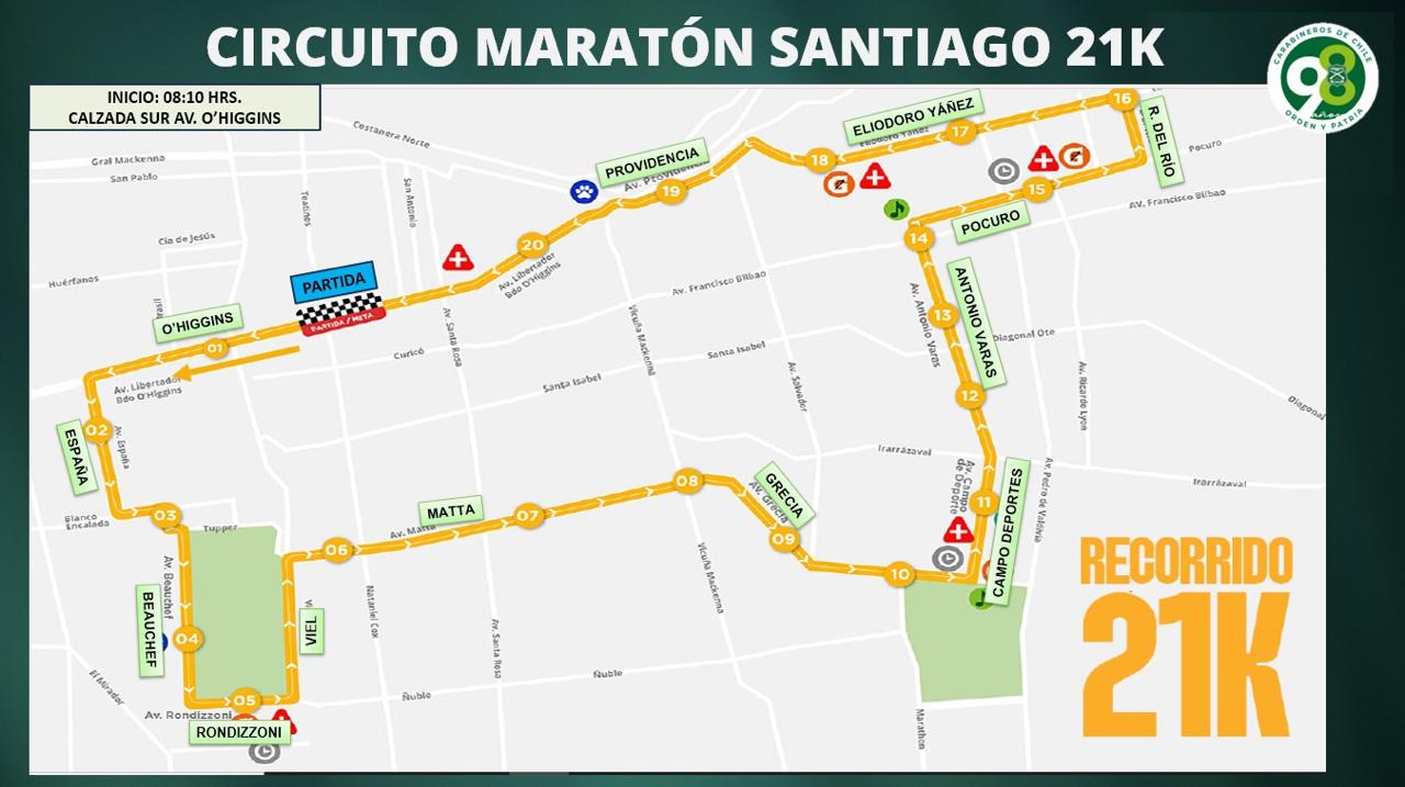 Estos serán los cortes de tránsito por la Maratón de Santiago en la categoría 21K
