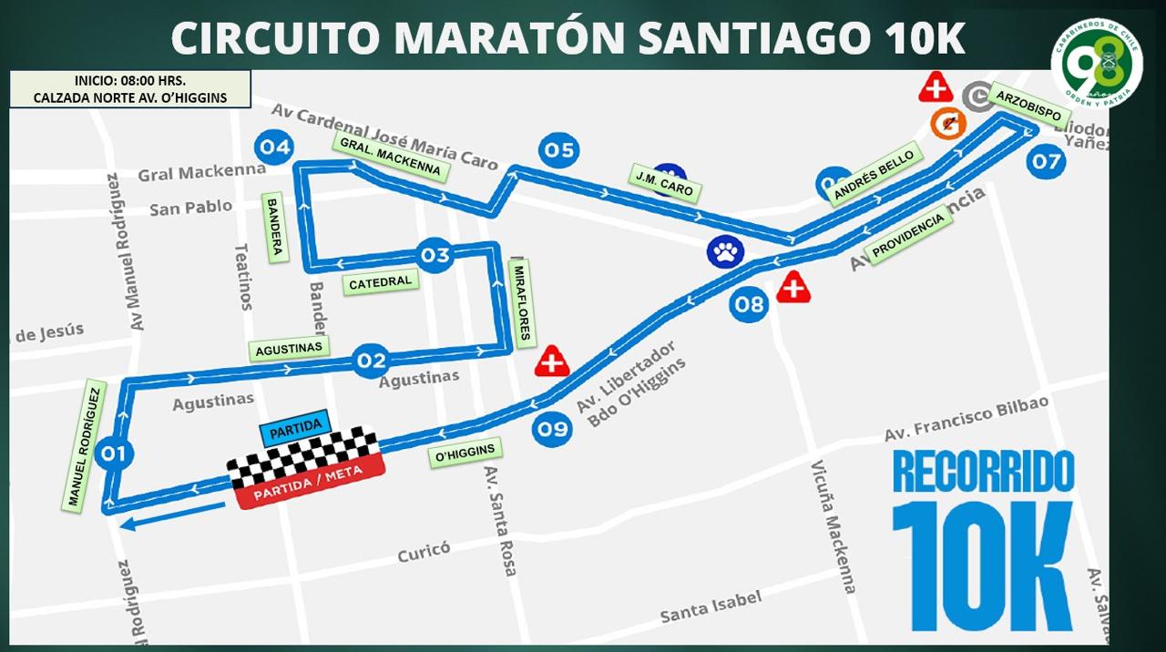 Estos serán los cortes de tránsito por la Maratón de Santiago en la categoría 10K