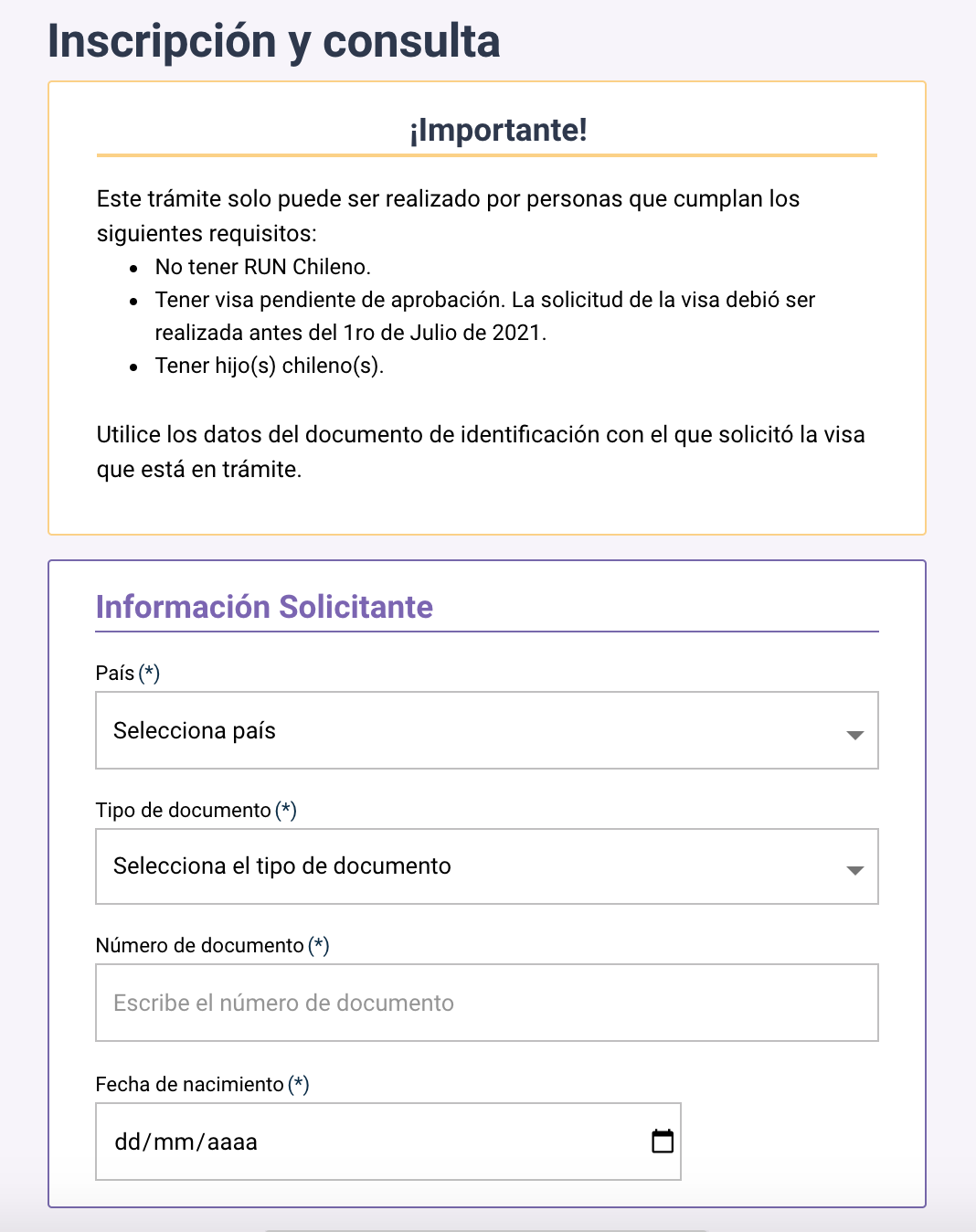 Para completar el formulario del solicitante, debes ocupar los datos del documento de identificación con el que solicitaste la visa que está en trámite. Allí deberás escribir tus datos personales, los de tus hijos y los de aquellas personas mayores de 18 años que forman parte de la misma solicitud de visa que se encuentra en trámite.