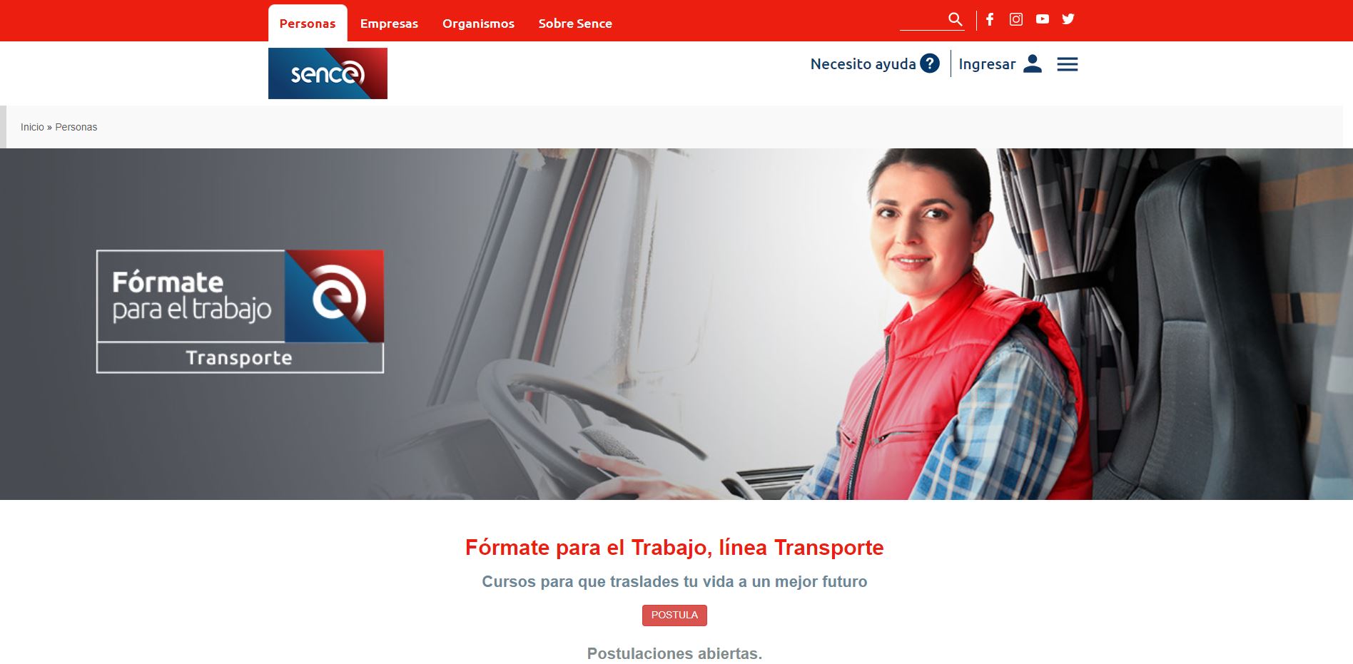 Para postular a las capacitaciones hay que acceder directamente al siguiente link: https://sence.gob.cl/personas/transporte.