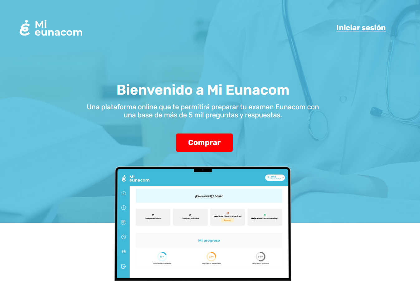 Mi Eunacom es una plataforma online que permite acceder a simulaciones del rendimiento del examen y cuenta con más de 5 mil preguntas diferentes basadas en pruebas anteriores.