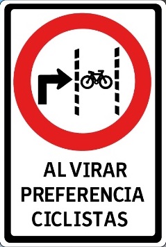 Además de otras señaléticas que entregan preferencia a los ciclos en el momento en que un vehículo vira a la derecha o izquierda.