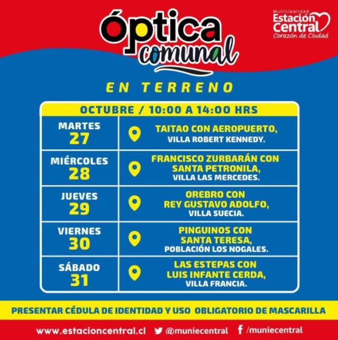En el link pueden ver ruta semanal📲🖥https://t.co/vEssEnVUiP pic.twitter.com/lSjhXNyYfG— #EstacionCentral (@muniecentral) October 27, 2020