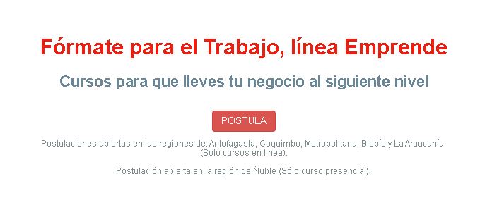 El programa ofrece el curso gratuito de Gestión de Emprendimiento en las 16 regiones del país. Dura 100 horas y los requisitos para postular son pertenecer al 60% más vulnerable de la población según el Registro Social de hogares (RSH) y tener 16 años o más.