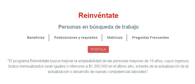 El programa Reinvéntate busca mejorar la empleabilidad de las personas mayores de 18 años, a través de la actualización o desarrollo de nuevas competencias laborales.