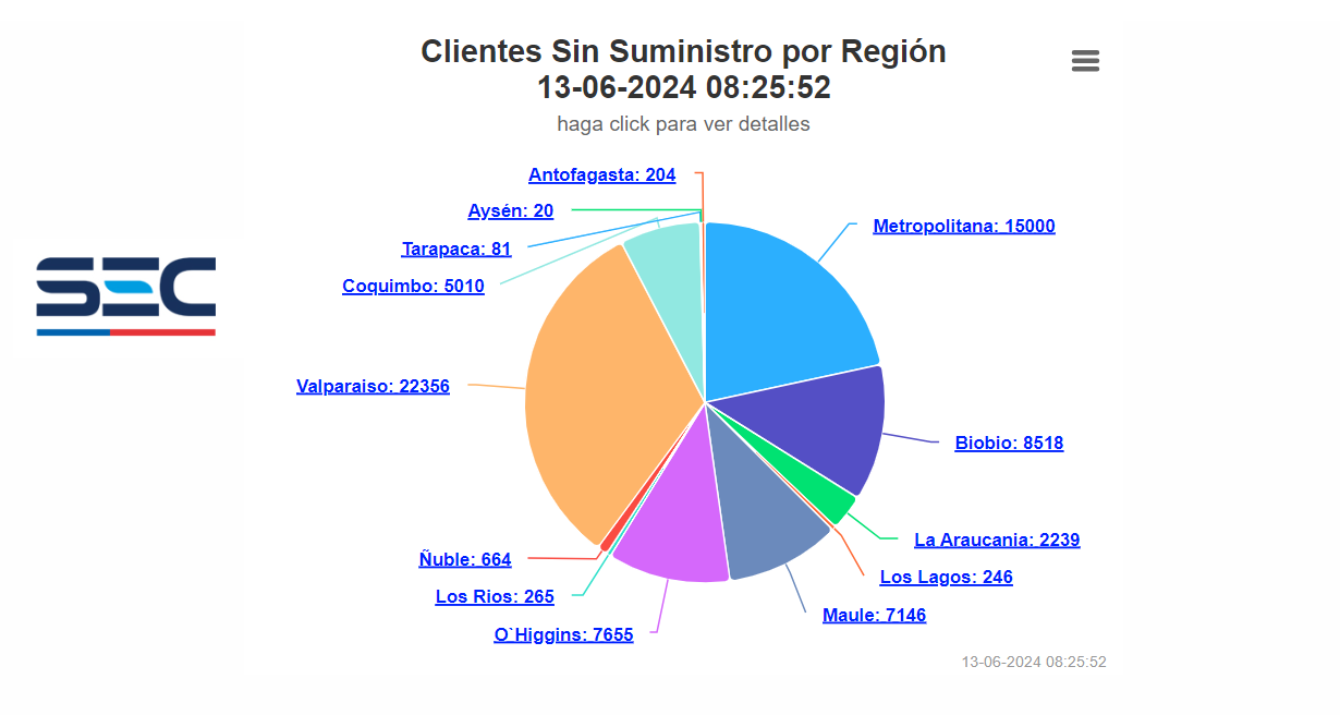 La Superintendencia de Electricidad y Combustible (SEC) advierte que si usted sufrió un corte de suministro eléctrico, y la información que aparece en la web no coincide con la que usted posee, puede hacer un reclamo AQUÍ.
