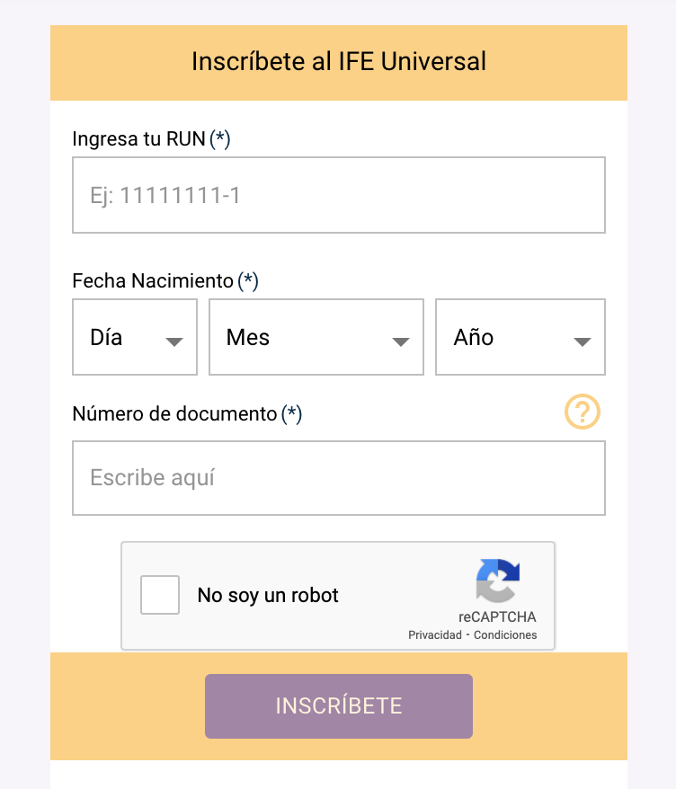 Para solicitarlo, es necesario ingresar al sitio web ingresodeemergencia.cl y acceder a la sección Inscríbete al IFE Universal, mediante una serie de datos personales o a través de la Clave Única.