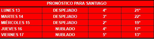“Este lunes (13 de julio), las temperaturas máximas en la capital fluctuarán entre 19° y 22°”, anticipa el meteorólogo de CHV y CNN Chile, Eduardo Sáez. Eso no es todo, porque “el martes (14 de julio) debiéramos sumar un grado, es decir, habrá sectores de Santiago que podrían llegar a 23° ese día. Recién el miércoles (15 de julio) comenzarán a bajar las temperaturas máximas”.