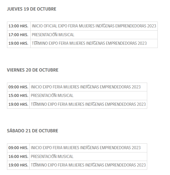 La Expo Feria Mujeres Emprendedoras Indígenas 2023 se llevará a cabo este 19, 20 y 21 de octubre en la Plaza de la Constitución, frente al Palacio de La Moneda.