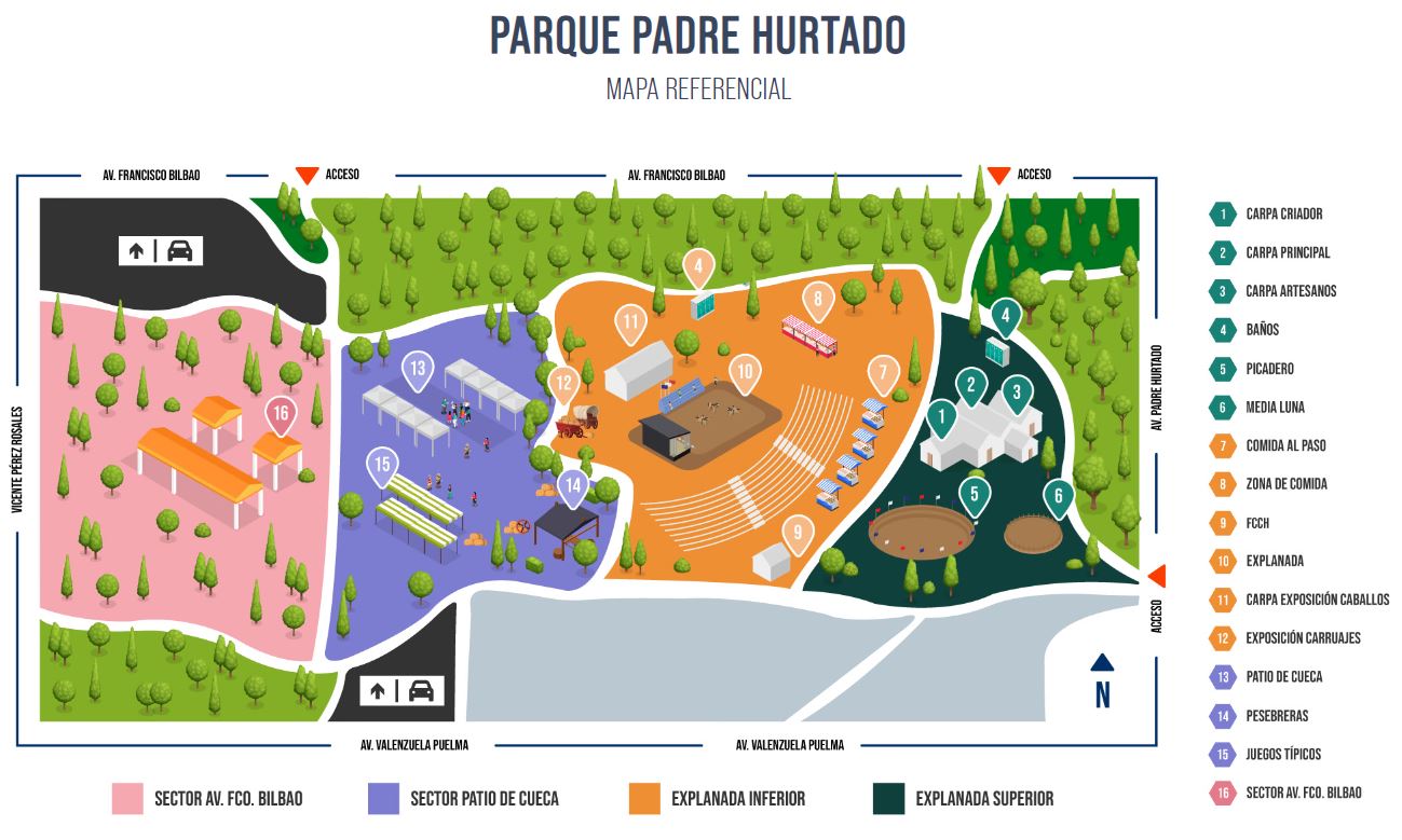 Si deseas asistir a esta la fonda, te indicamos cómo llegar: El ingreso se realiza por la Av. Francisco Bilbao 8105, y el parque cuenta con cuatro áreas diferenciadas: