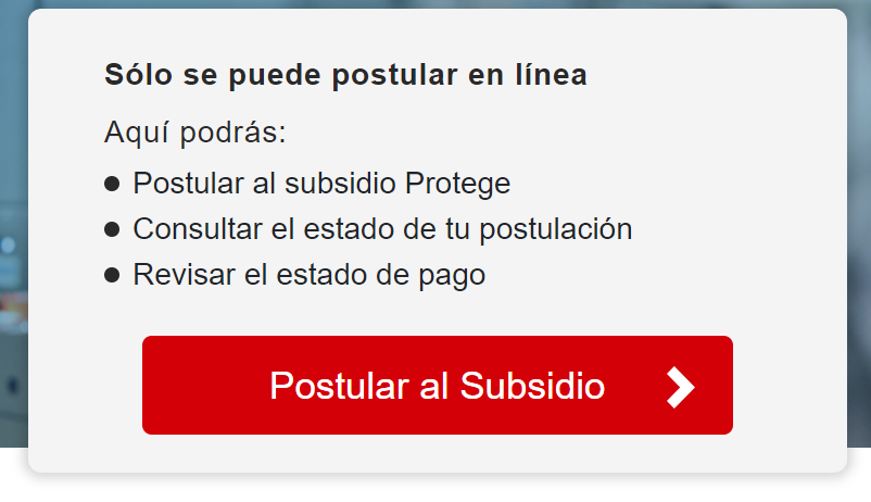En el caso de cumplir todos los requisitos para realizar la respectiva postulación, la persona tendrá que ingresar al sitio web del Subsidio al Empleo, seleccionando la opción "Subsidio Protege".