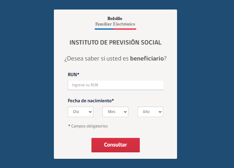 Una vez en el sitio web, deberás digitar tu RUT y fecha de nacimiento, y el sistema automáticamente te informará si recibes el pago del beneficio.