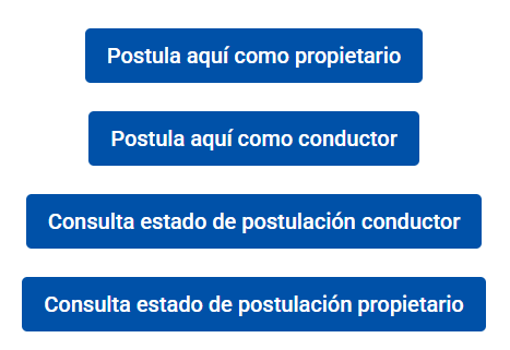 Para consultar el estado de tu postulación usa las opciones: “Consulta estado de postulación conductor” o “Consulta estado de postulación propietario”.