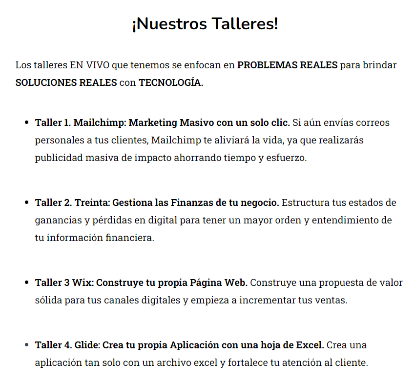 Esto les permitirá optimizar y potenciar su negocio para alcanzar los objetivos propuestos. Las clases, que son online y prácticas, tienen una duración de una hora y se realizan durante cuatro semanas.