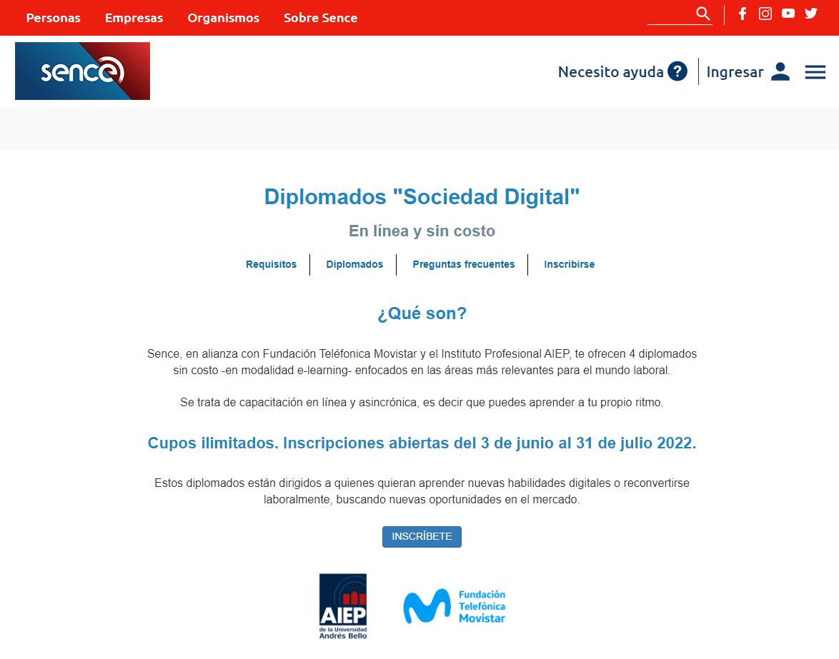 El pasado 3 de junio se abrieron las inscripciones para acceder a los cuatro Diplomados Sociedad Digital ofrecidos por el Sence.