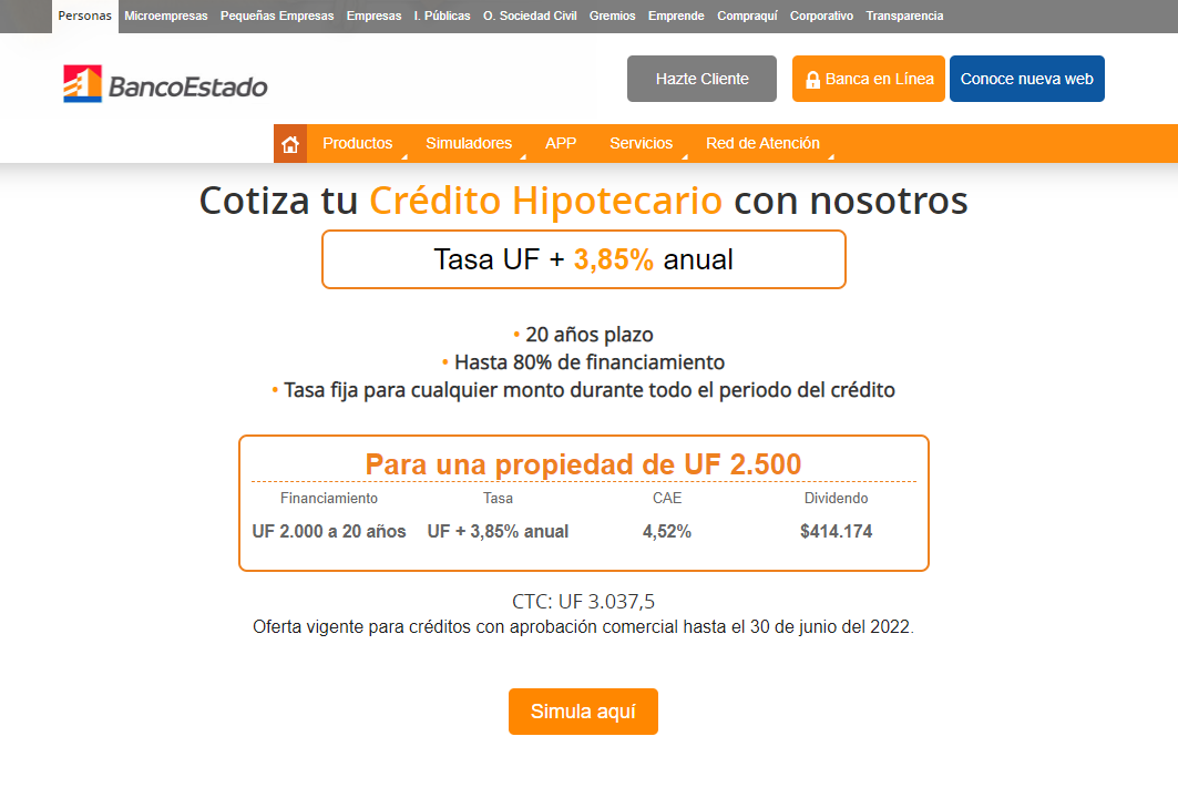 La medida recientemente anunciada por la entidad bancaria considera una tasa fija de UF + 3.85% anual para viviendas de cualquier monto, a 20 años plazo y con financiamiento de hasta un 80%. A continuación, el paso a paso de su obtención y/o simulación.