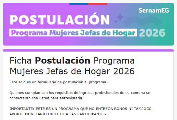 Las postulaciones al Programa Mujeres Jefas de Hogar se encuentran abiertas hasta marzo de este año, dependiendo de la cantidad de cupos disponibles en la comuna donde se ejecuta.