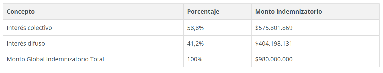 El organismo informó a través de su página web que la empresa deberá desembolsar $980 millones que irán en beneficio de los afectados, los cuales fueron separados en dos grupos.