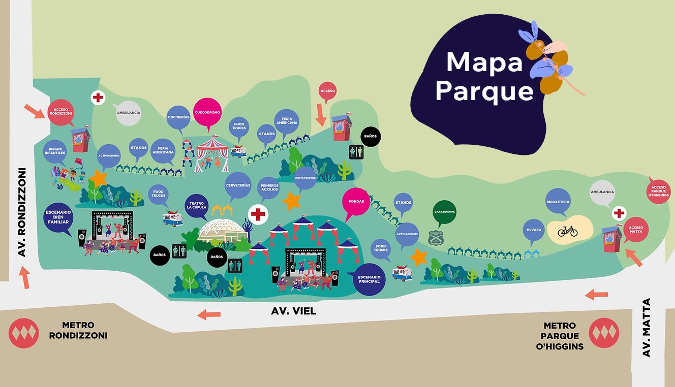 Finalmente, los accesos al Parque O'Higgins para los cuatros días de celebración, serán los siguientes: